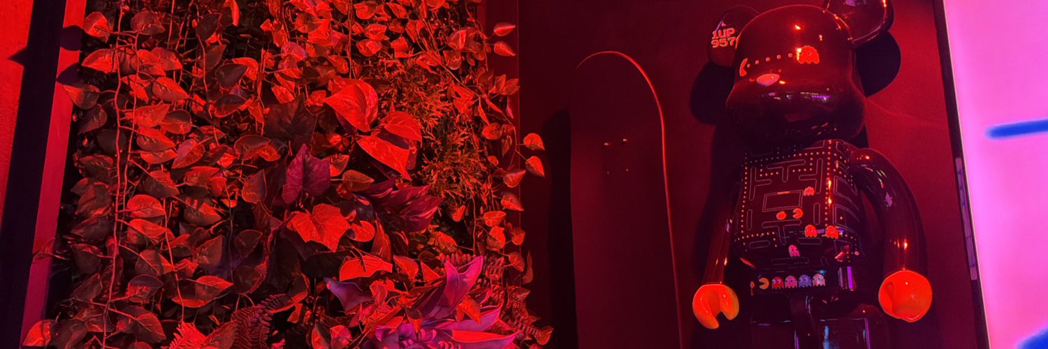 店内は人気ゲームキャラクターが天井から吊り下げられたカラフルな電飾が印象的。